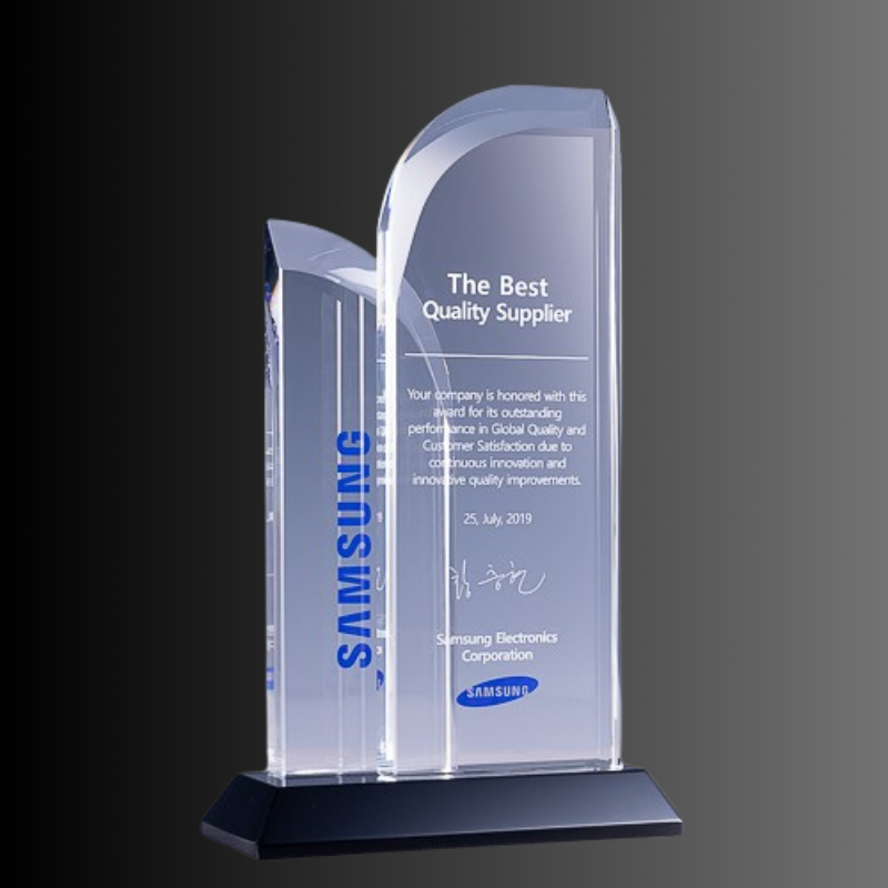 Kỷ niệm chương pha lê KNC-149 được làm từ chất liệu thủy tinh hoặc pha lê cao cấp, hạng sang mang đến sự sang trọng, tinh tế và bền đẹp mang phong cách hiện đại.